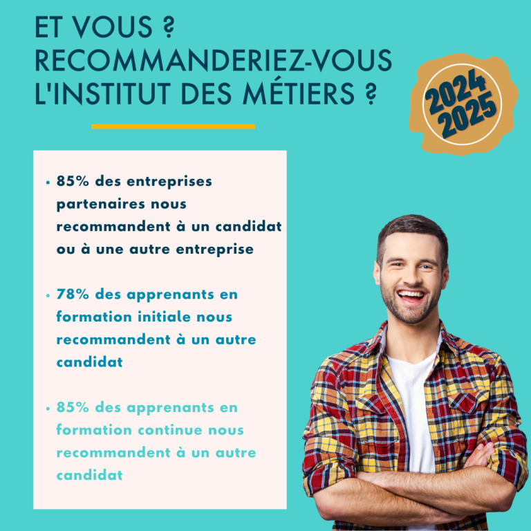 Ce succès est complété par un taux de satisfaction des apprentis de 75,1%, prouvant que non seulement nos étudiants réussissent, mais qu’ils sont également satisfaits de leur parcours d’apprentissage chez nous. Ces résultats soulignent notre engagement continu envers l’excellence éducative et le bien-être de chaque apprenant.